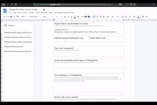 The free UX Portfolio Case Study template is based on over 60 portfolios of successful design hires from Facebook, Amazon, Uber, Twitter, Apple, Google, LinkedIn, Dropbox and the insights of top design recruiters from around the world.